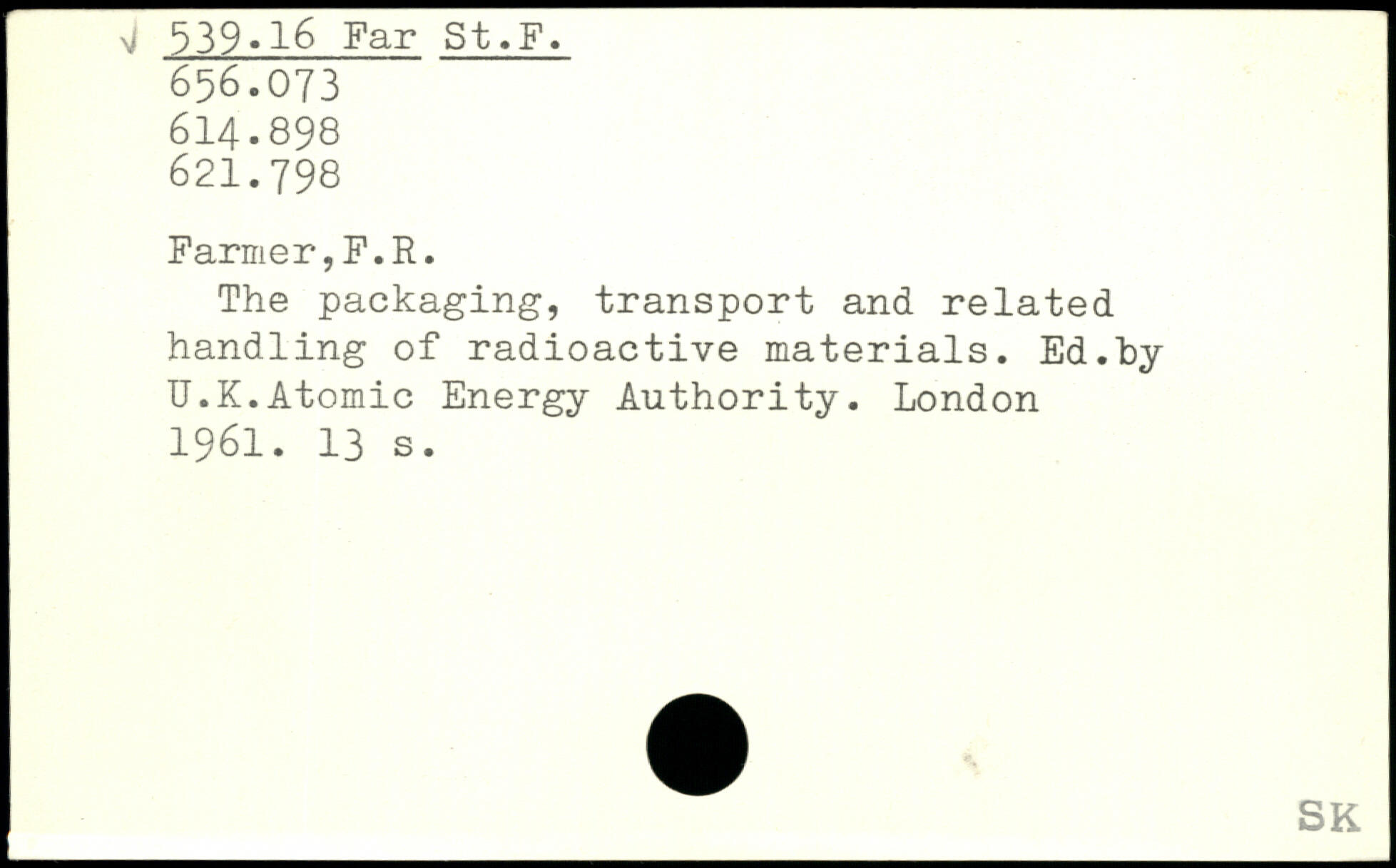 The packaging, transport and related handling of radioactive materials. Ed.by U.K.Atomic Energy Authority.