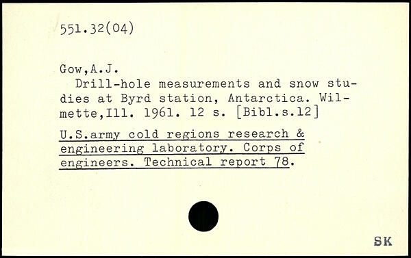 Drill-hole measurements and snow studies at Byrd station, Antarctica. Wilmette,111. 1961.