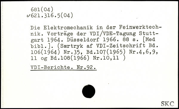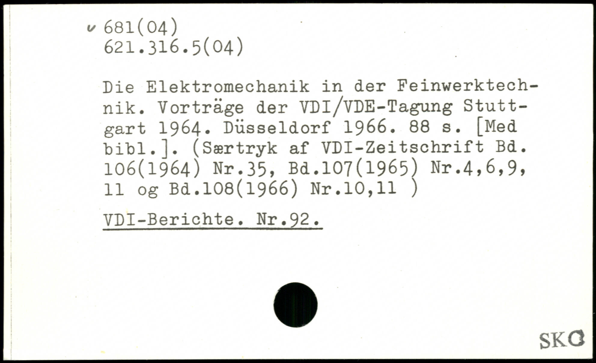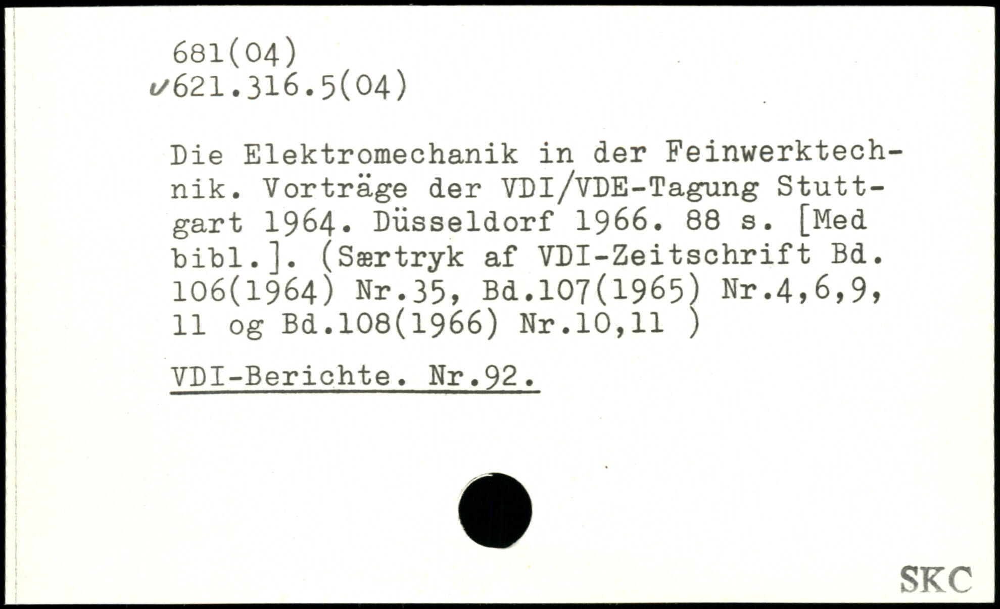 Die Elektromechanik in der Feinwerktechnik. Vorträge der VDl/VDE-Tagung