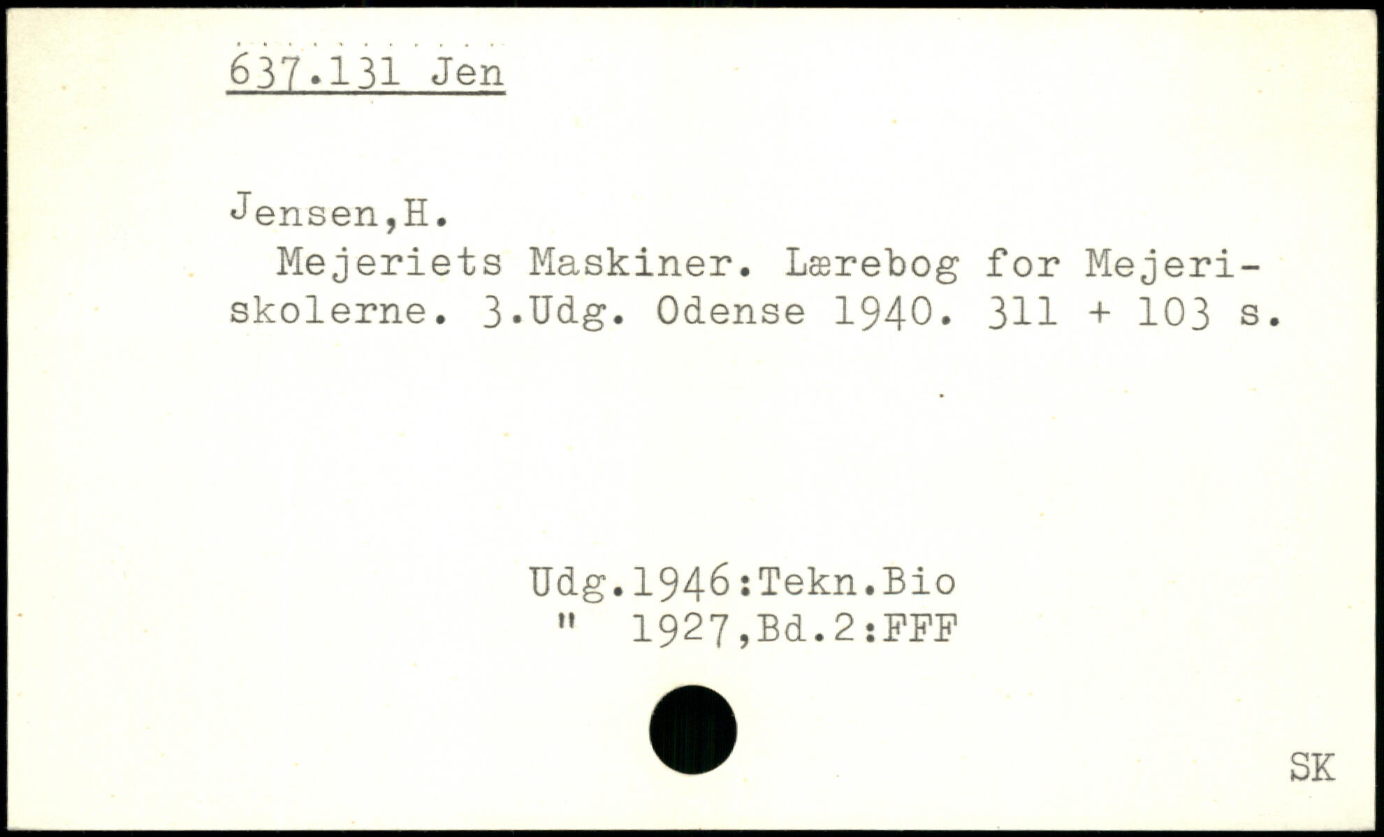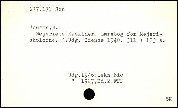 Mejeriets Maskiner. Lærebog for Mejeriskolerne. 3.Udg. Odense 1940. 311 +