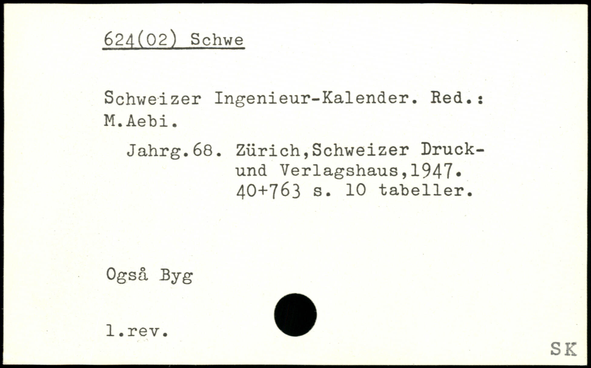 Schweizer Ingenieur-Kalender. Red.: M.Aebi. Jahrg.68.