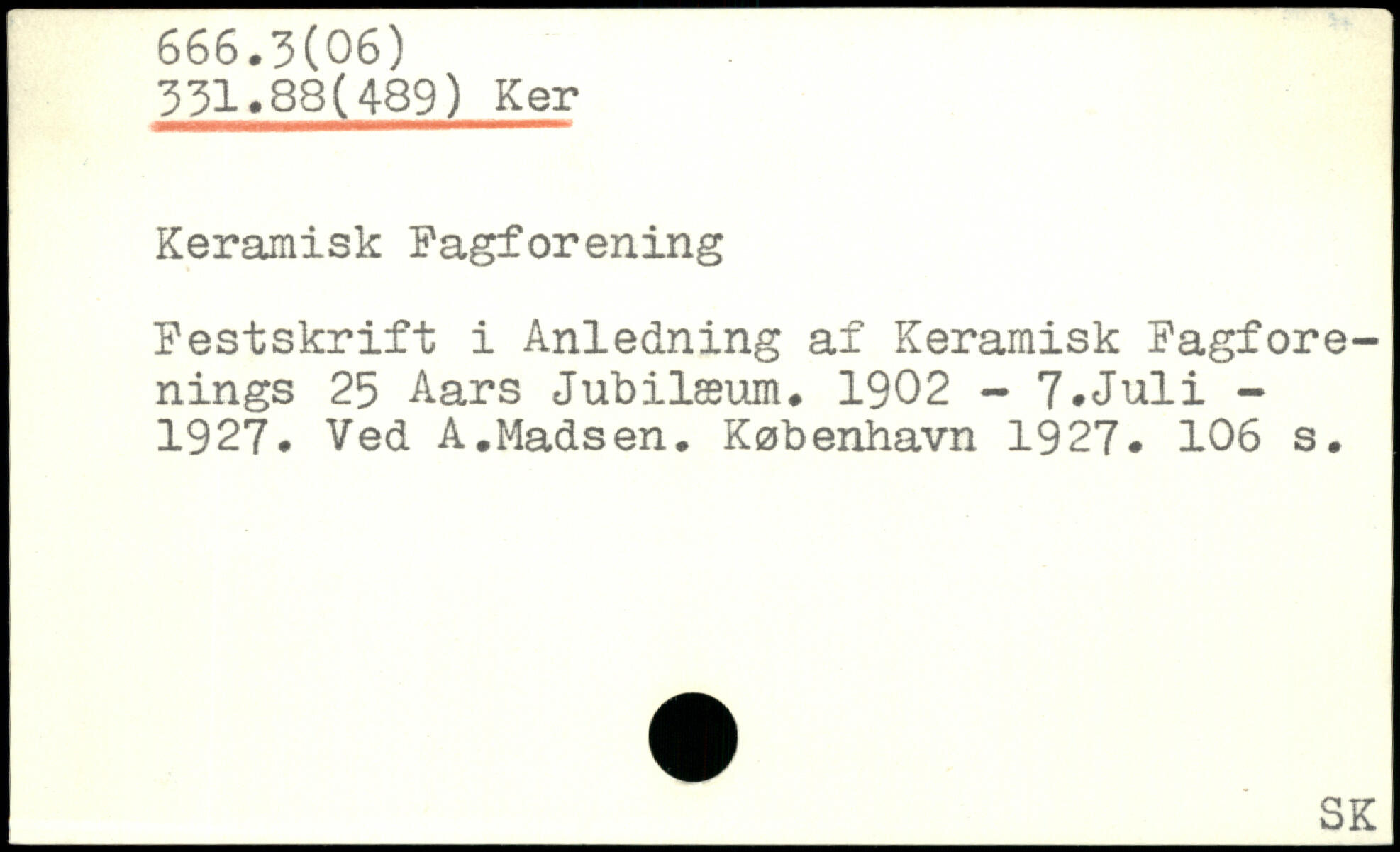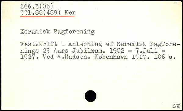 Keramisk Fagforening Festskrift i Anledning af Keramisk Fagforenings 25 Aars Jubilæum. 1902 - 7.Juli -1927. Ved A.Madsen.