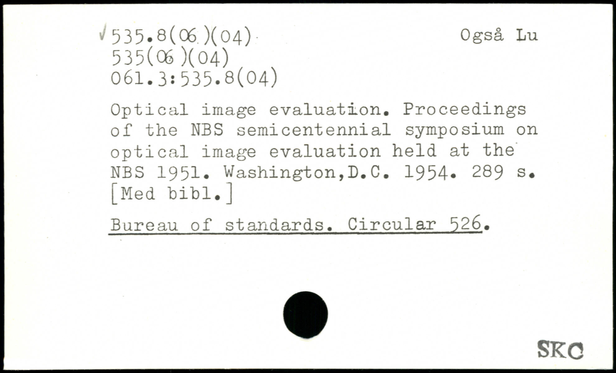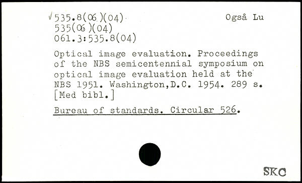 Optical image evaluation. Proceedings of the NBS semicentennial symposium on optical image evaluation held at the NBS 1951. Washington,D.C. 1954