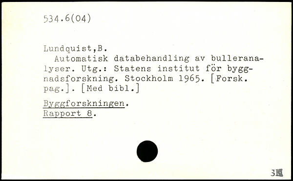Automatisk databehandling av bulleranalyser. Utg.: Statens institut for bygg-nadsforskning.