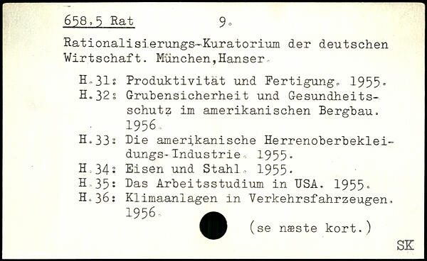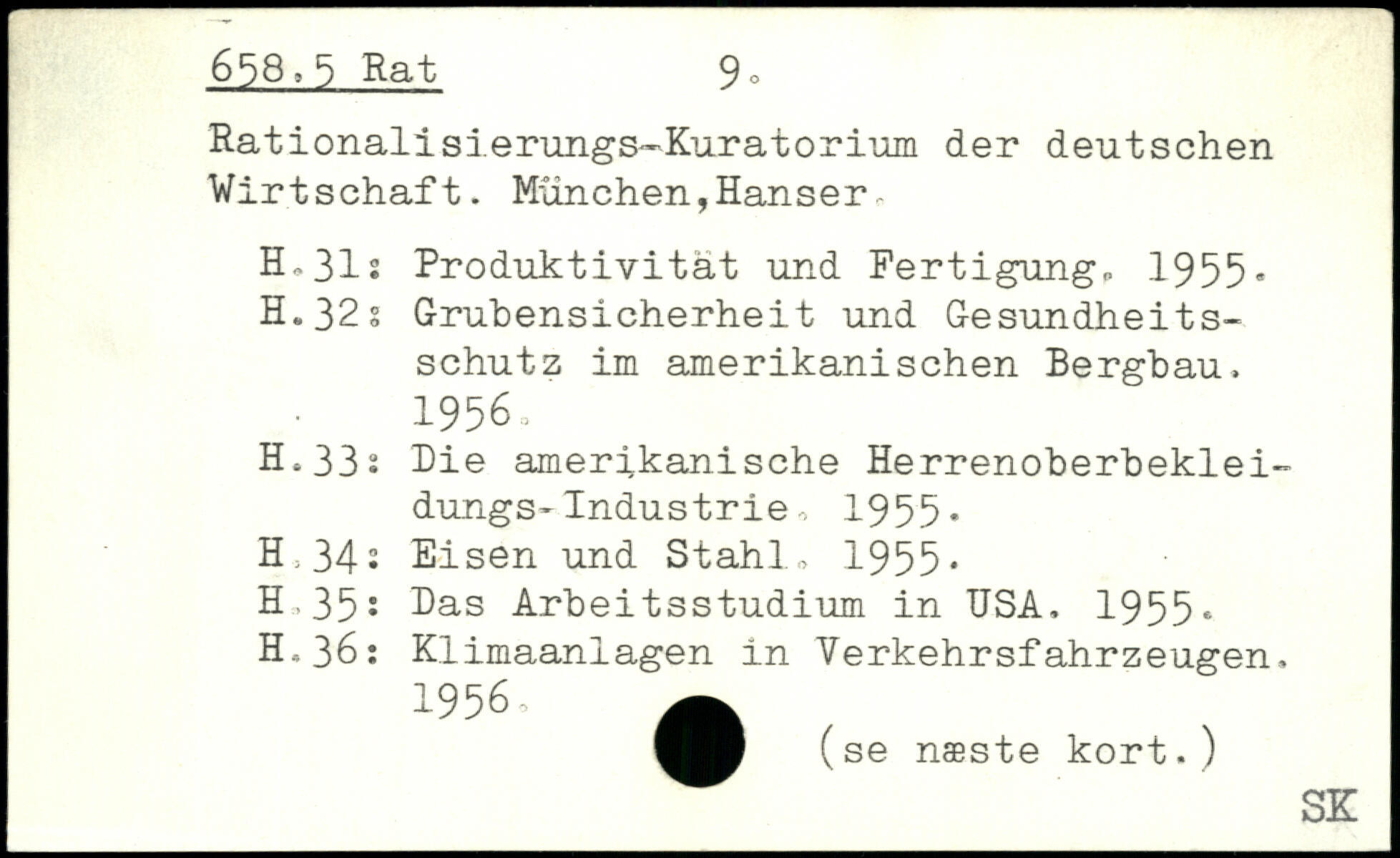 Rational!sierungs-Kuratorium der deutschen Wirtschaft. München,Hanser- H,31î Produktivität und Fertigung, 1955. H.32s Grubensicherheit und Gesundheitsschutz im amerikanischen Bergbau. 1956. H.33ï Die amerikanische Herrenoberbeklei-dungs-Industrie, 1955. IL34s Eisen und Stahl, 1955. H,35: Pas Arbeitsstudium in USA, 1955-H.,36: Klimaanlagen in Verkehrsfahrzeugen, 1956 ^