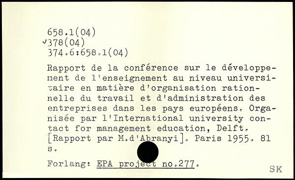 Rapport de la conférence sur le développe-nent de l’enseignement au niveau univers!- ; ôaire en matière d'organisation rationnelle du travail et d'administration des entreprises dans les pays européens, Organisée par l’International university contact for management éducation, Delft.