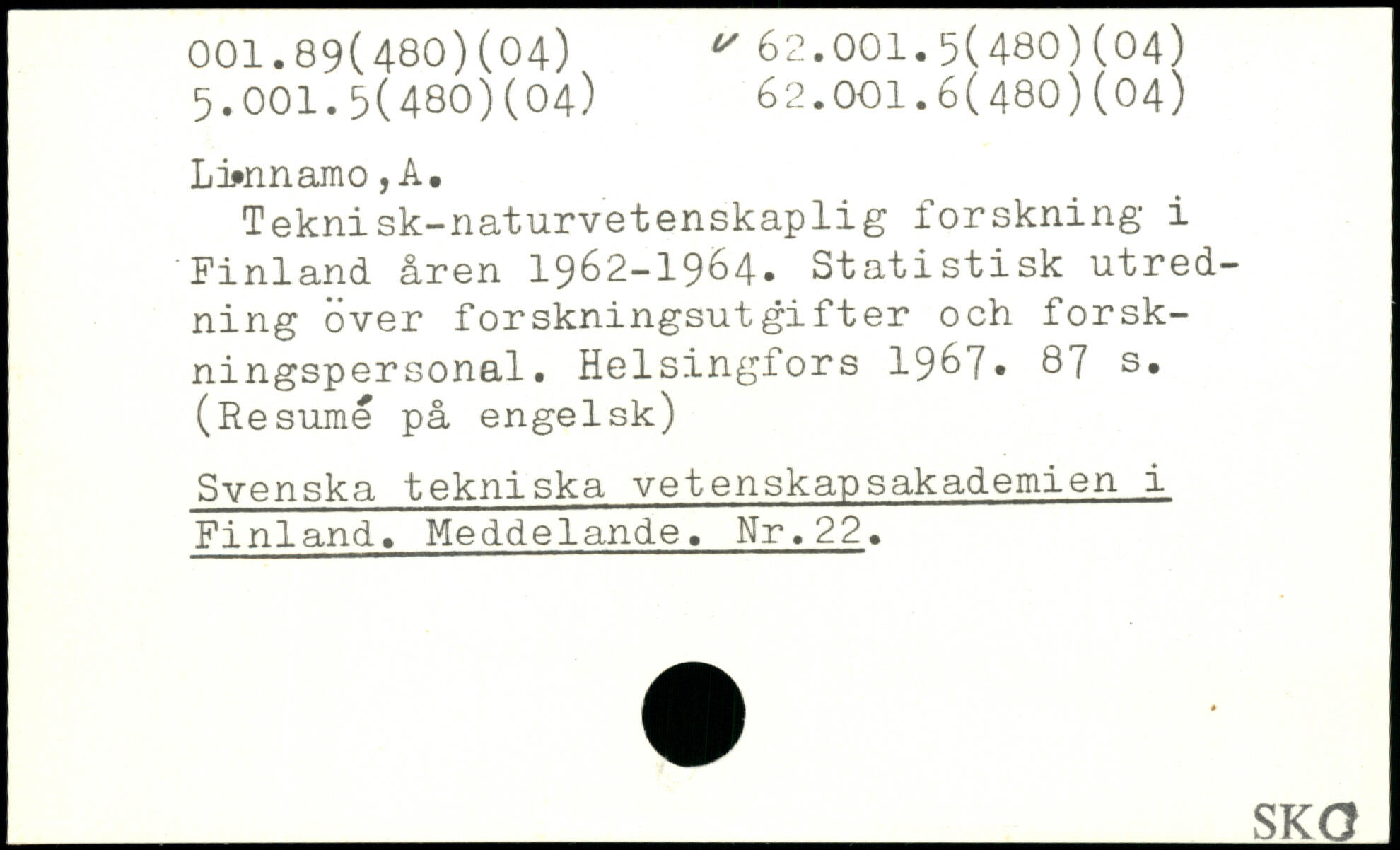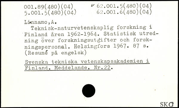 Teknisk-naturvetenskaplig forskning i Finland åren 1962-1964. Statistisk utredning över forskningsudgifter och forskningspersonal.
