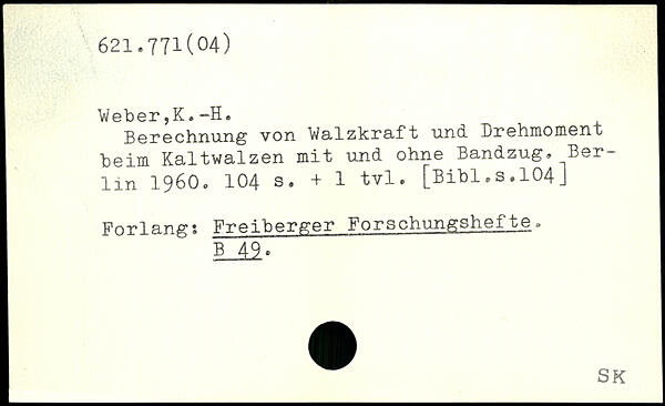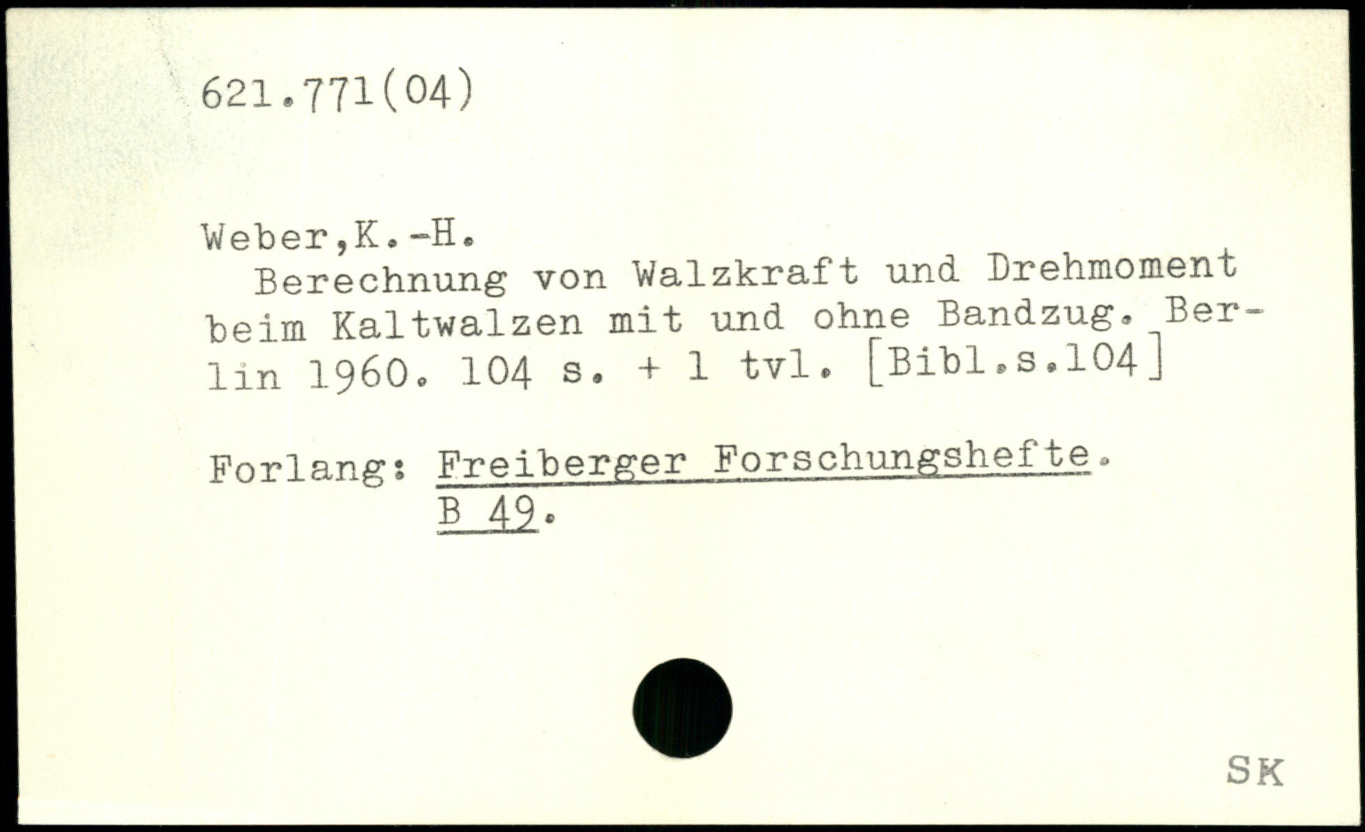 i Berechnung von Walzkraft und. Drehmoment beim Kaltwalzen mit und ohne Bandzug