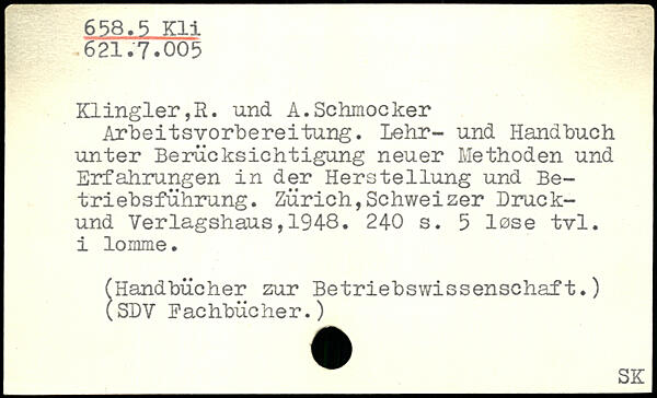 Arbeitsvorbereitung. Lehr- und Handbuch unter Berücksichtigung neuer Methoden und Erfahrungen in der Herstellung und Betriebsführung.