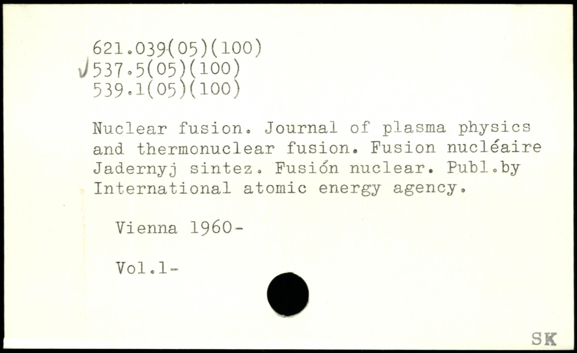 Nuclear fusion. Journal of plasma physics and thermonuclear fusion. Fusion nucléaire Jadernyj sintez. Fusion nuclear. Puhl.by International atomic energy agency. Vienna 1960-