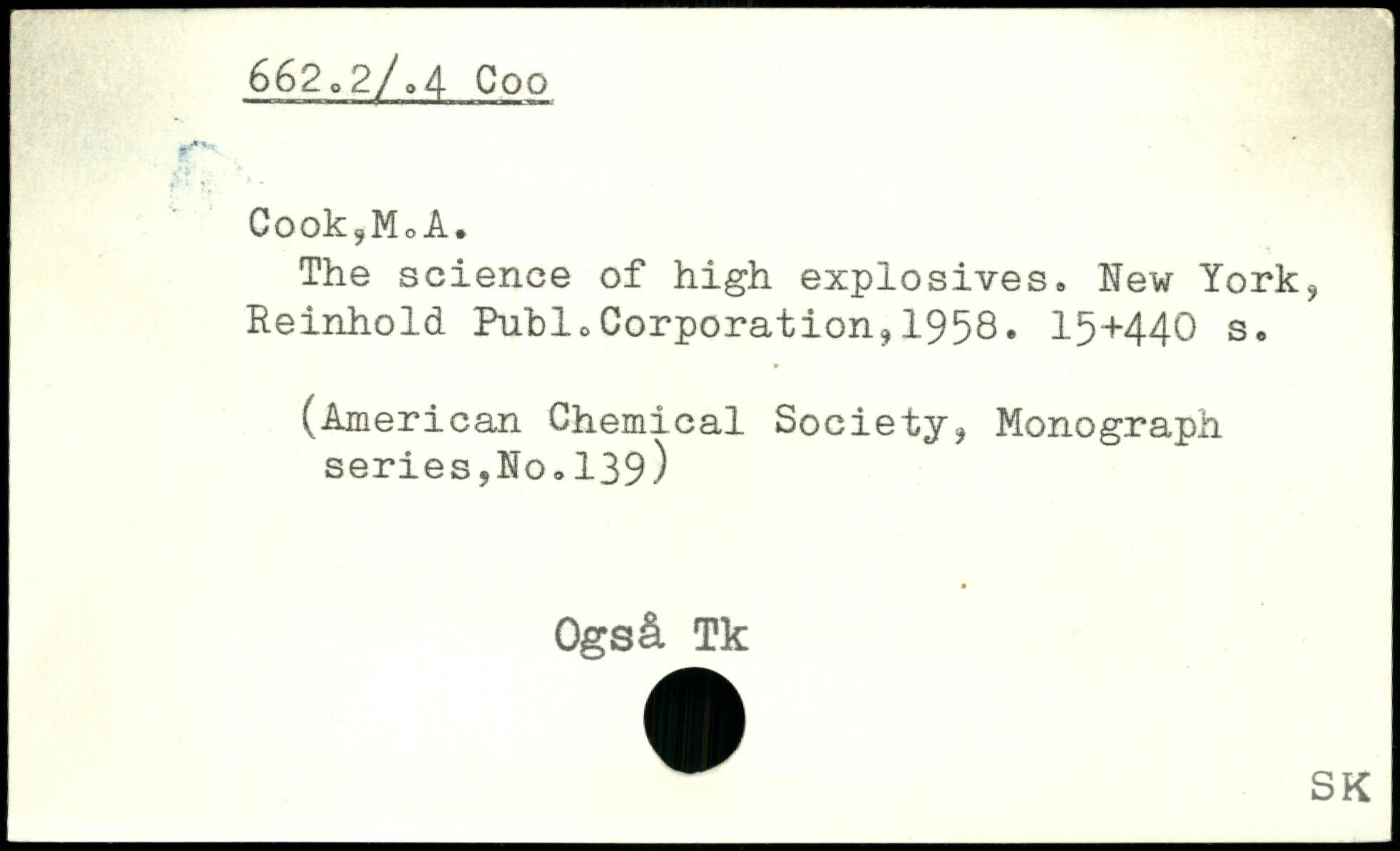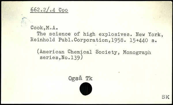 Cook?MoA. The science of high explosives.
