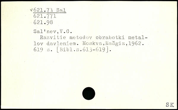 Sal'nev,V.G. Hazvitie raetod.ov obrabotki netal-lov davleniem.