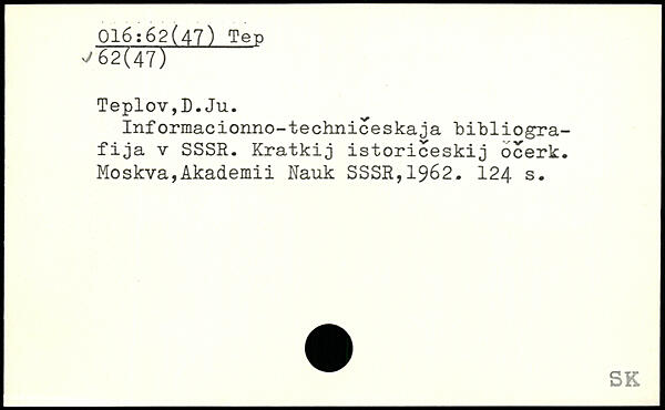 TeploVjD.Ju. Informacionno-techniceskaja 'bi'bliogra-fija v SSSR. Kratkij istoriceskij ocerk.