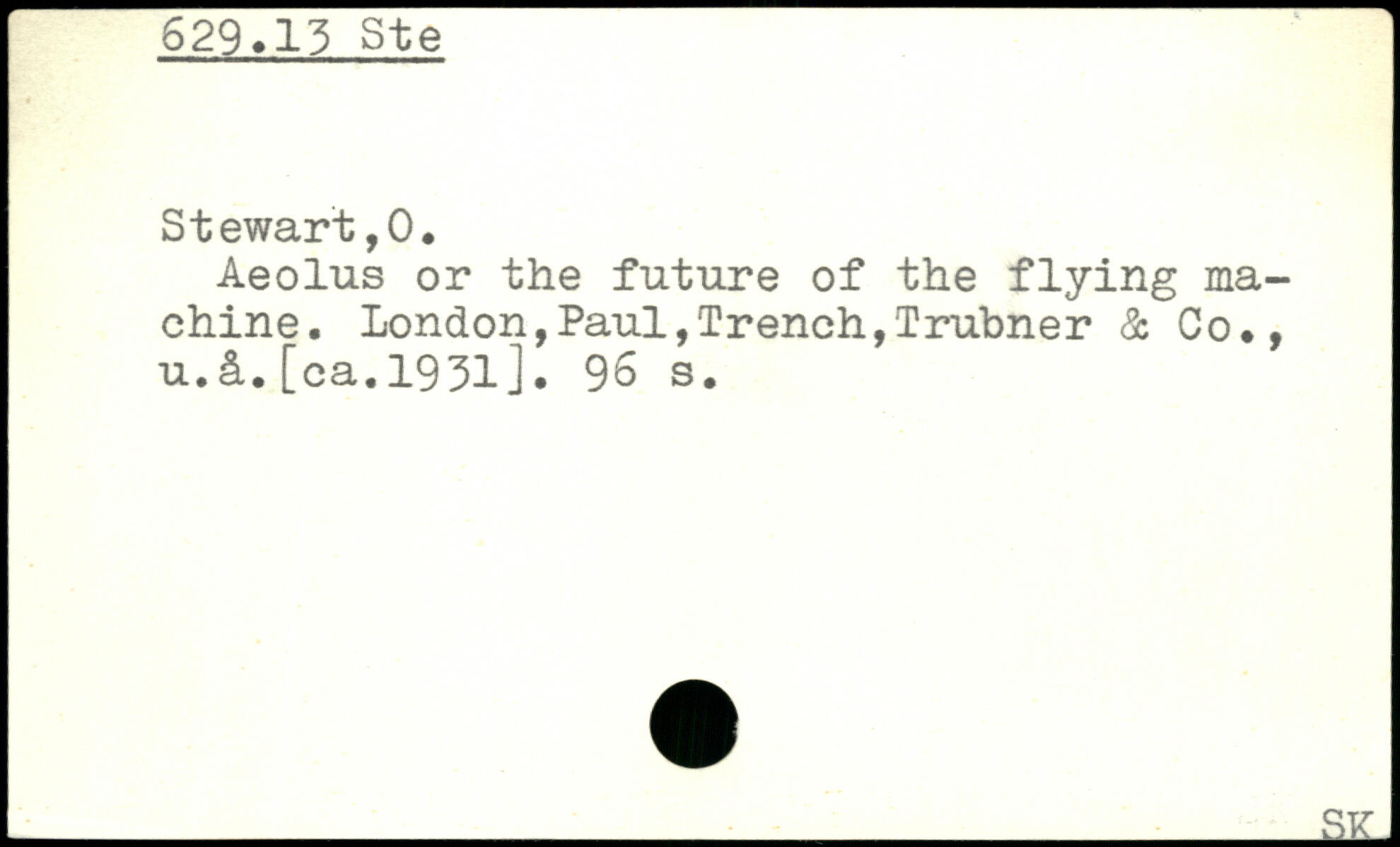 Aeolus or the future of the flying machine. London,Paul,Trench,Trubner & Co., u.&.[ca.1931].