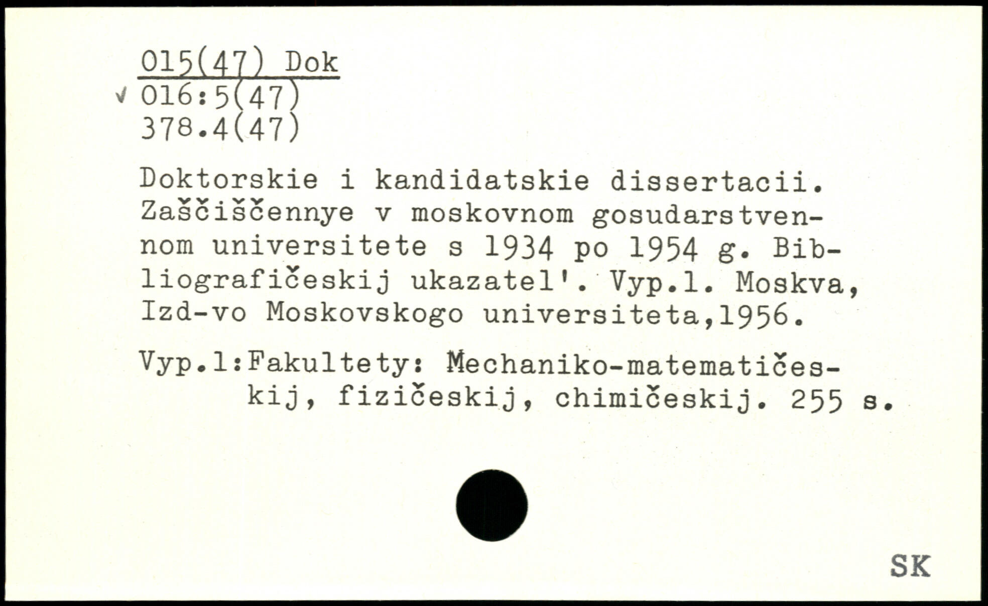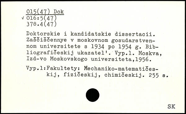 Doktorskie i kandidatskie dissertacii. Zasciscennye v moskovnom gosudarstven-nom universitete s 1934 po 1954 g. Bibliograf iceskij ukazatel1. Vyp.1.