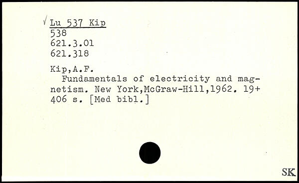 Fundamentals of electricity and magnetism.