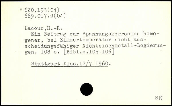 Ein Beitrag zur Spannungskorrosion homogener, bei Zimmertemperatur nicht ausscheidungsfähiger Nichteisenmetall-Legierungen