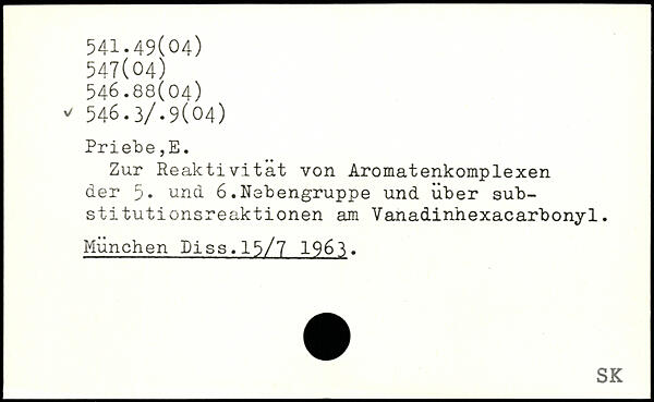 Sur Reaktivität von Aromatenkomplexen der 5, 6.Nebengruppe und über sub- stitutionsreaktionen am Vanadinhexacarbonyl. München Piss.15/7 1963.