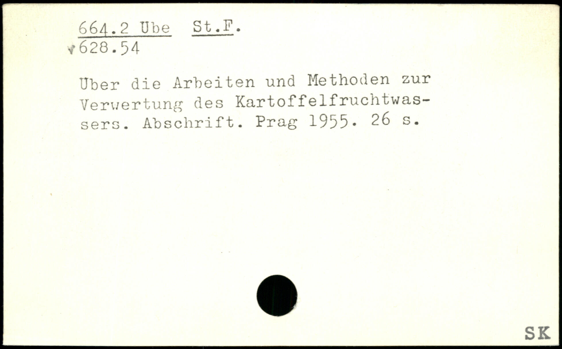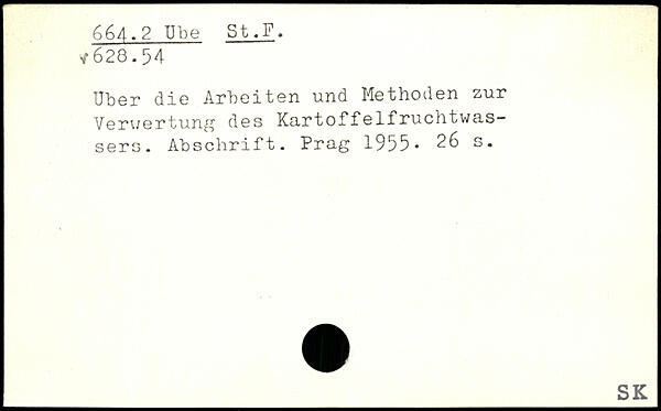 Uber die Arbeiten und Methoden zur Verwertung des Kartoffelfruchtwassers. Abschrift. Prag 1955.