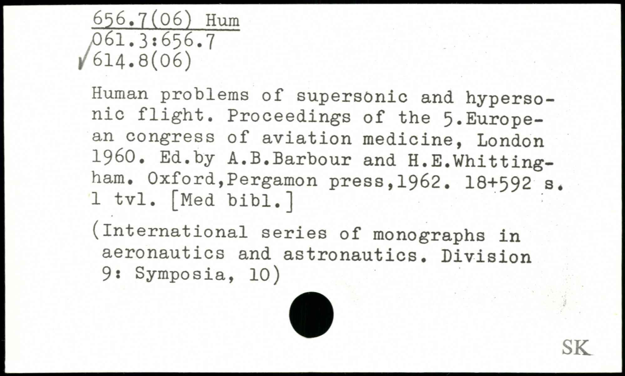 Human problems of supersonic and hypersonic flight. Proceedings of the 5.European congress of aviation medicine