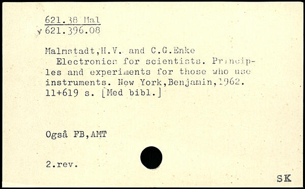 Mainstadt ,11. V. and C. G. Enke Electronics for scientists. Principles and experiments for those who use instruments.