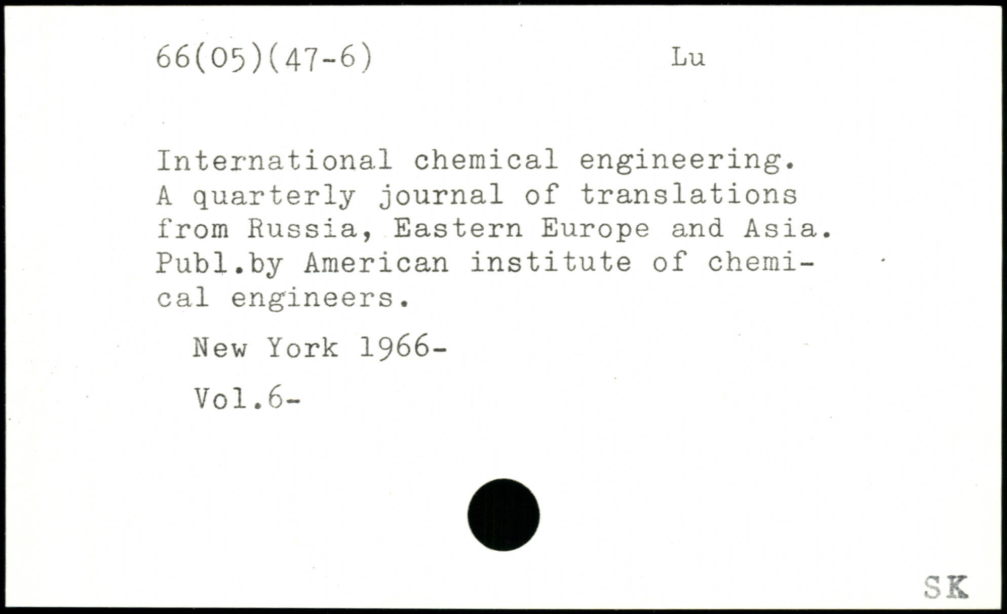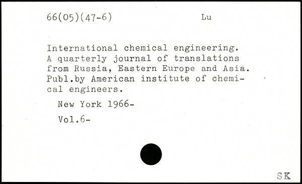 International chemical engineering. A quarterly journal of translations from Russia, Eastern Europe and Asia.