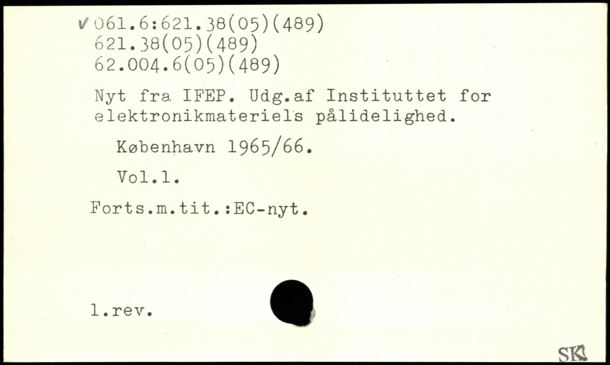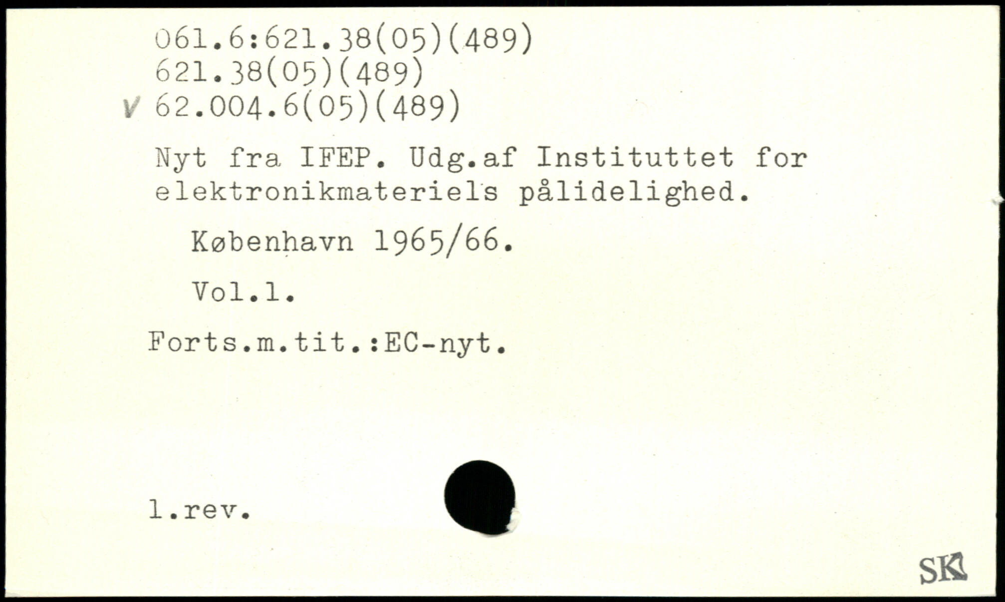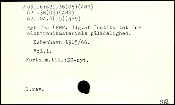 Nyt fra IFEP. Udg.af Instituttet for ! elektronikmateriels pålidelighed.