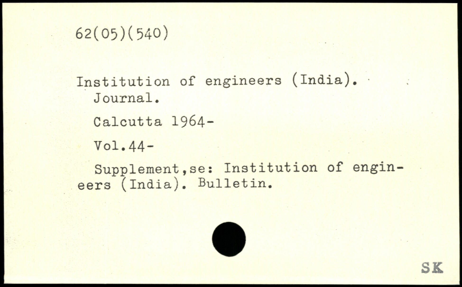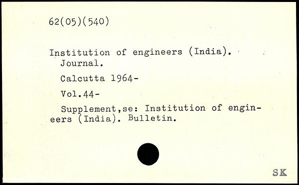Institution of engineers (India). Journal. Calcutta 1964- Yol.44- Supplement , se : Institution of engineers (India). Bulletin.