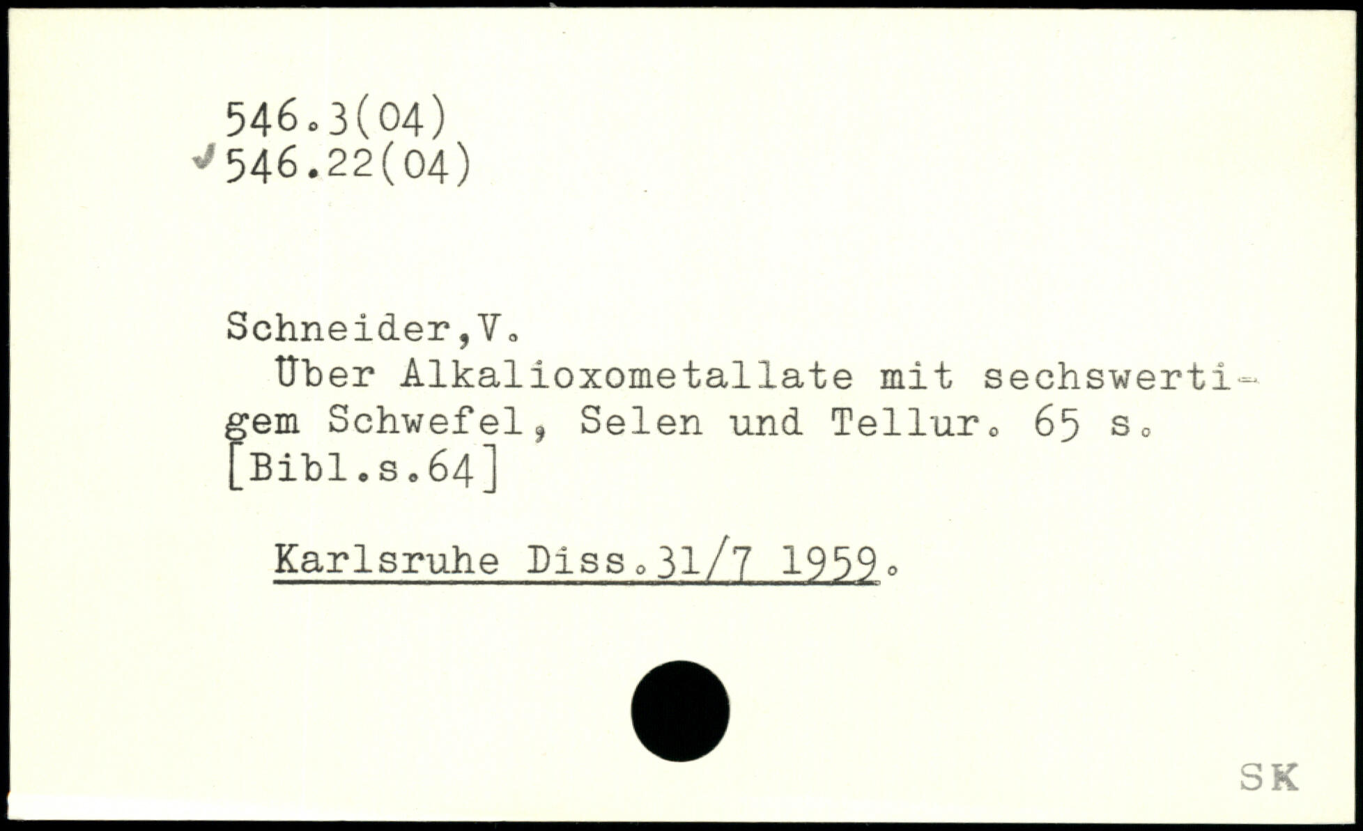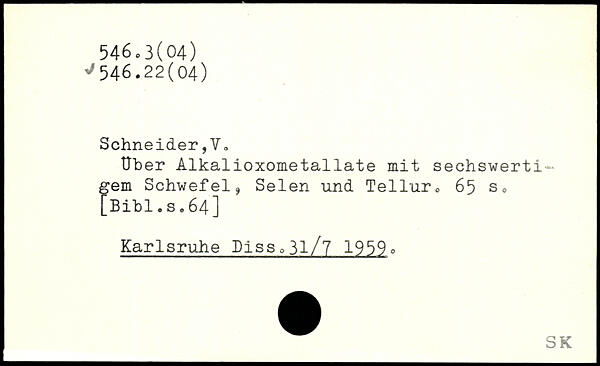 Uber Alkalioxometallate mit sechswerti-gern Schwefel, Selen und Tellur0