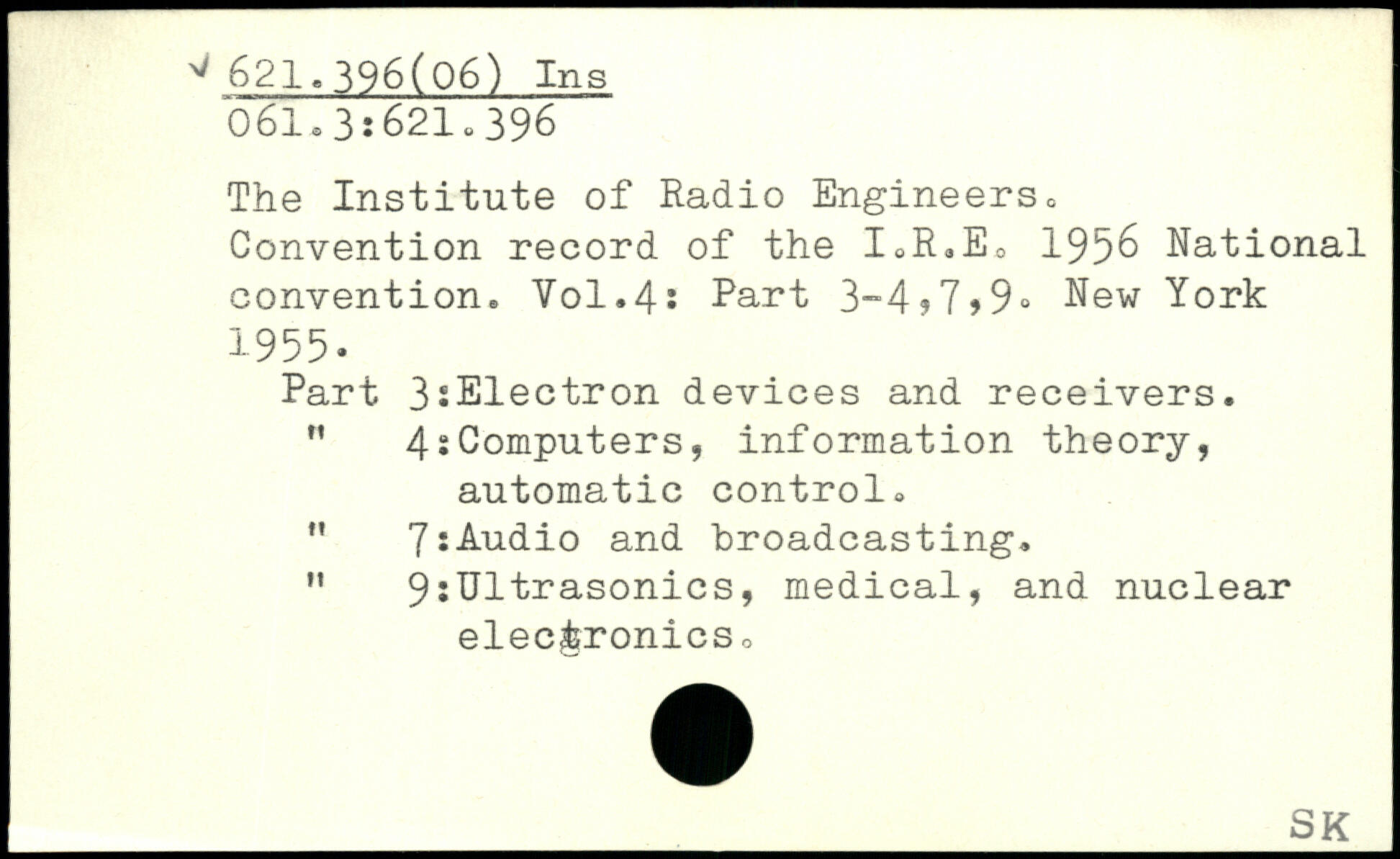 The Institute of Radio Engineers. Convention record of the I.R.Eo 1956 National convention. V0I.4: Part 3-4,7>9.