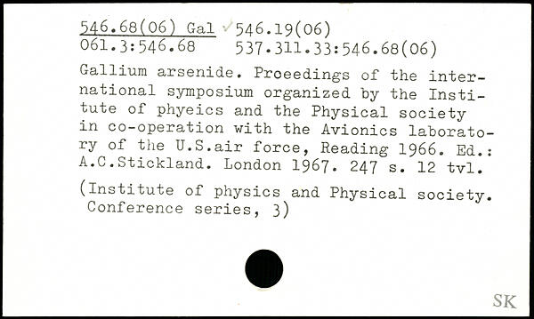 Gallium arsenide. Proeedings of the international symposium organized by the Institute of phyeics and the Physical society in co-operation with the Avionics laboratory of the U.S.air force, Reading 1966. Ed.: A.G.Stickland.