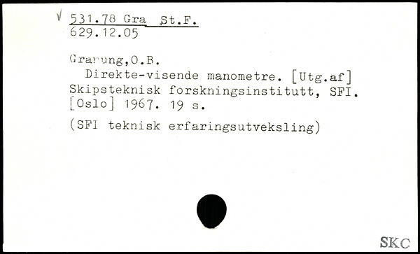 Direkte-visende manometre. [Utg.af] Skipsteknisk forskningsinstitutt, SFI.