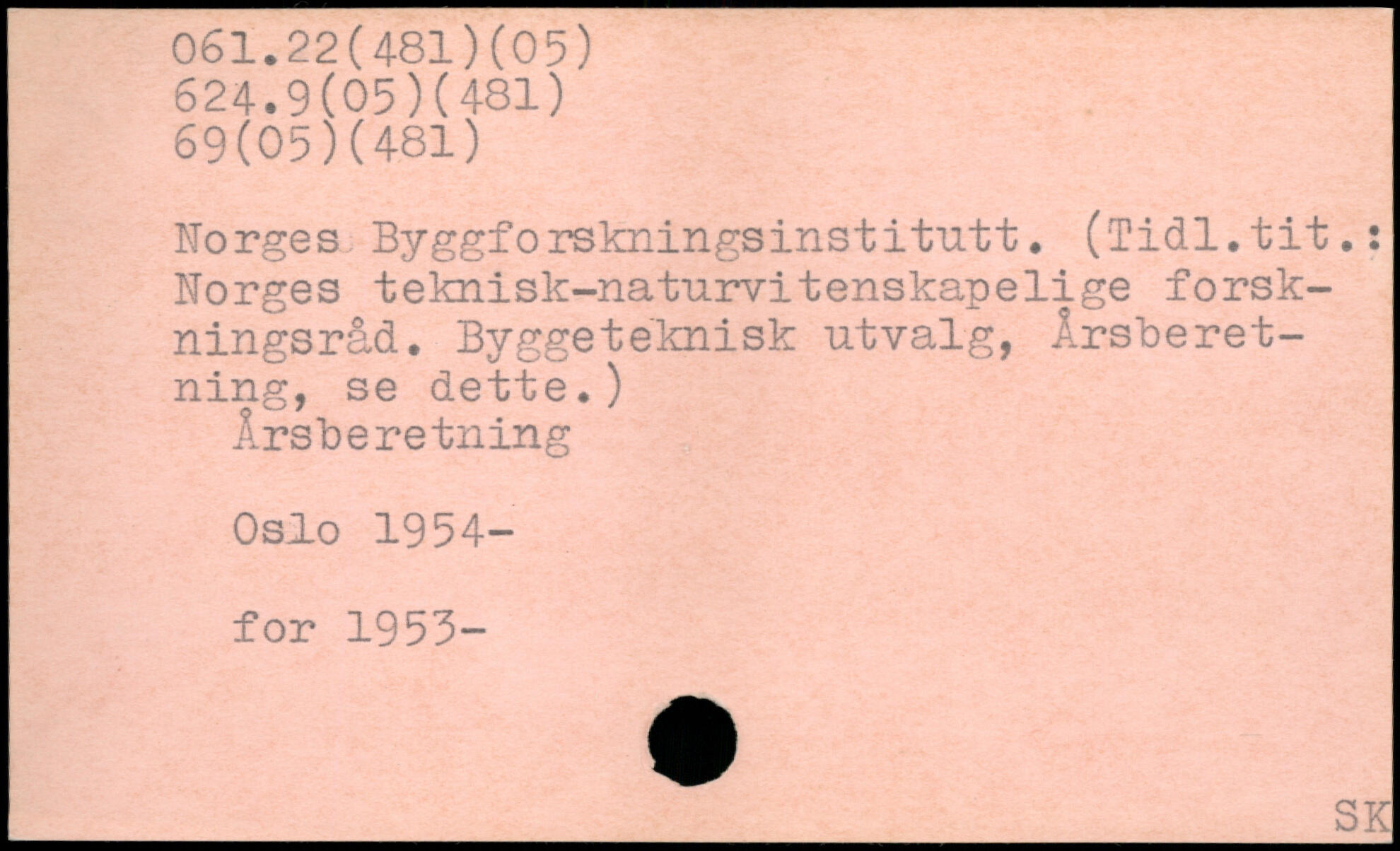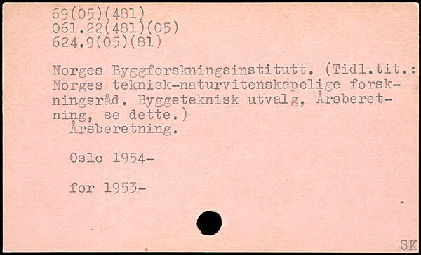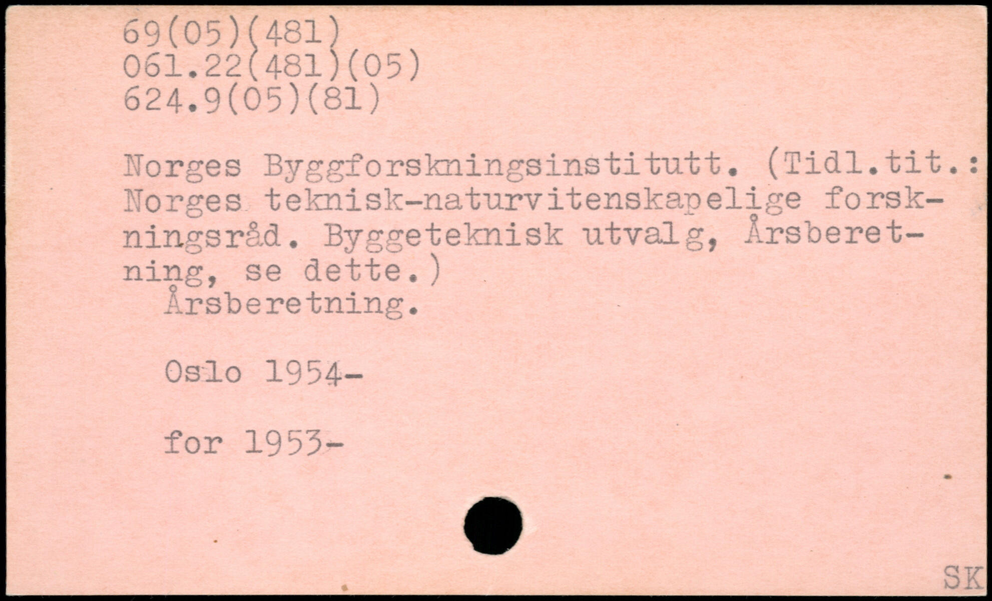 Norges Byggforskningsinstitutt. (Tidl.tit.: Norges teknisk-naturvitenskapelige forskningsråd. Byggeteknisk utvalg, Årsberetning, se dette.) Årsberetning Oslo 1954- for 1953-