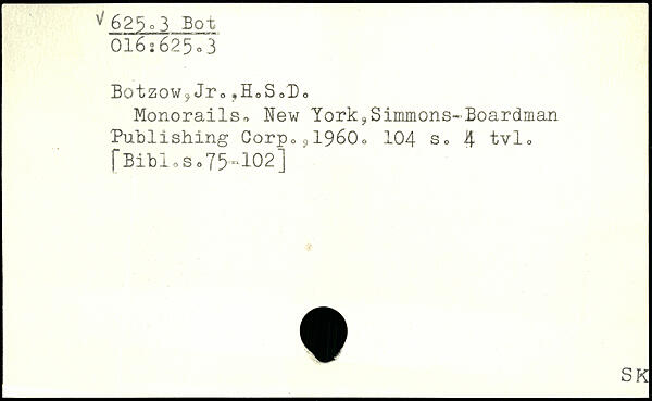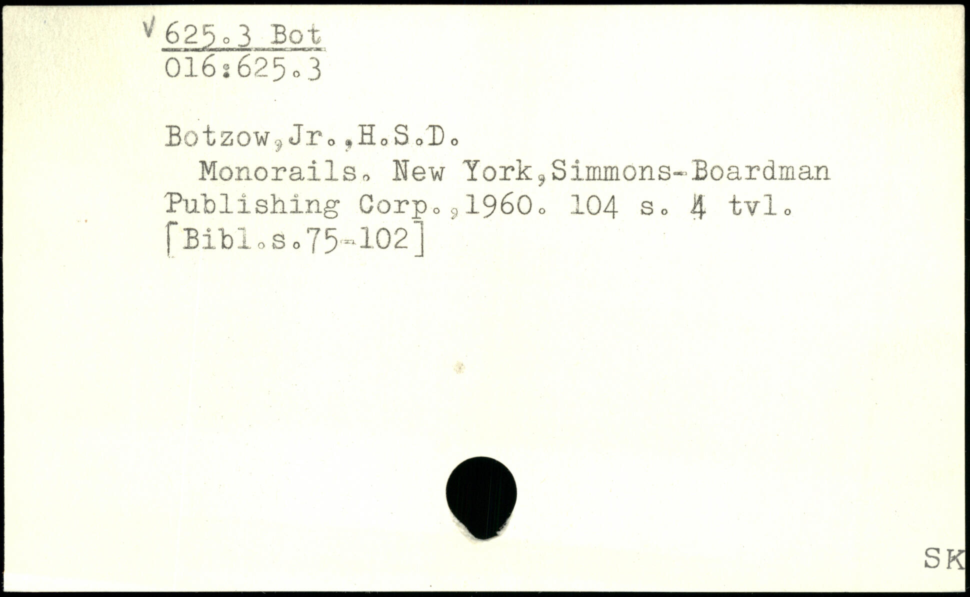 Botzow,Jrc,HoSoDo Monorails, New York,Simmons-Boardman Publishing Corp091960o