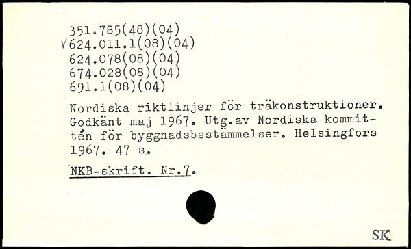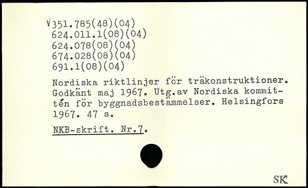 Nordiska riktlinjer fcr träkonstruktioner. Godkänt maj 1967. Utg.av Nordiska kommittén för byggnadsbestämmelser.