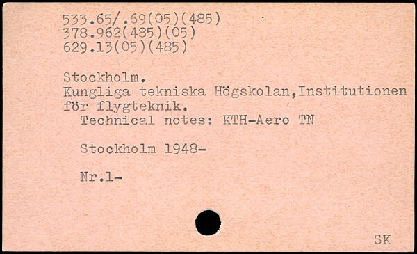Kungliga tekniska Högskolan,Institutionen för flygteknik. Technical notes: KTH-Aero TN