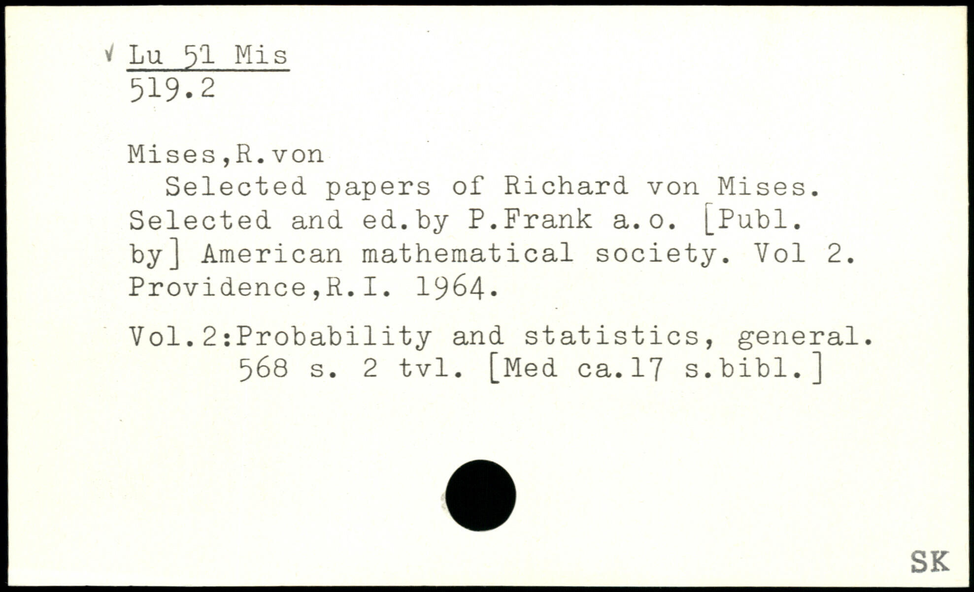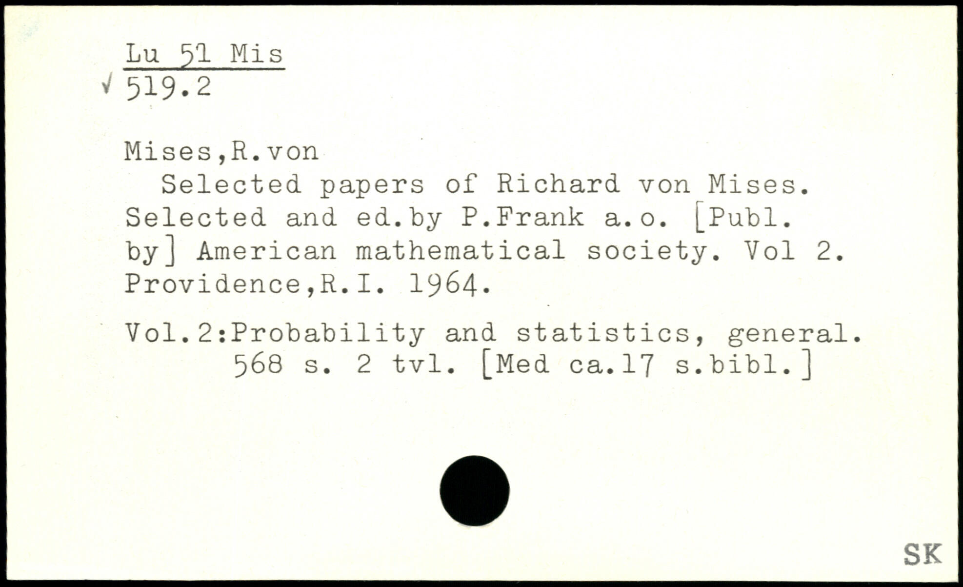 Selected papers of Richard von Mises. Selected and ed.by P.Frank a.o.
