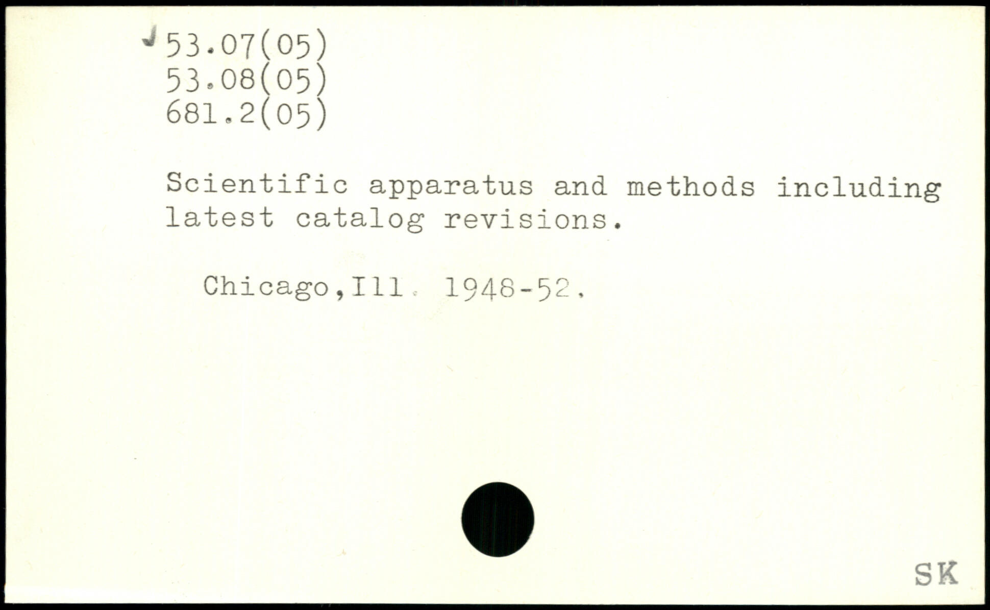 Scientific apparatus and methods including latest catalog revisions. Chicago,111. 1948-52