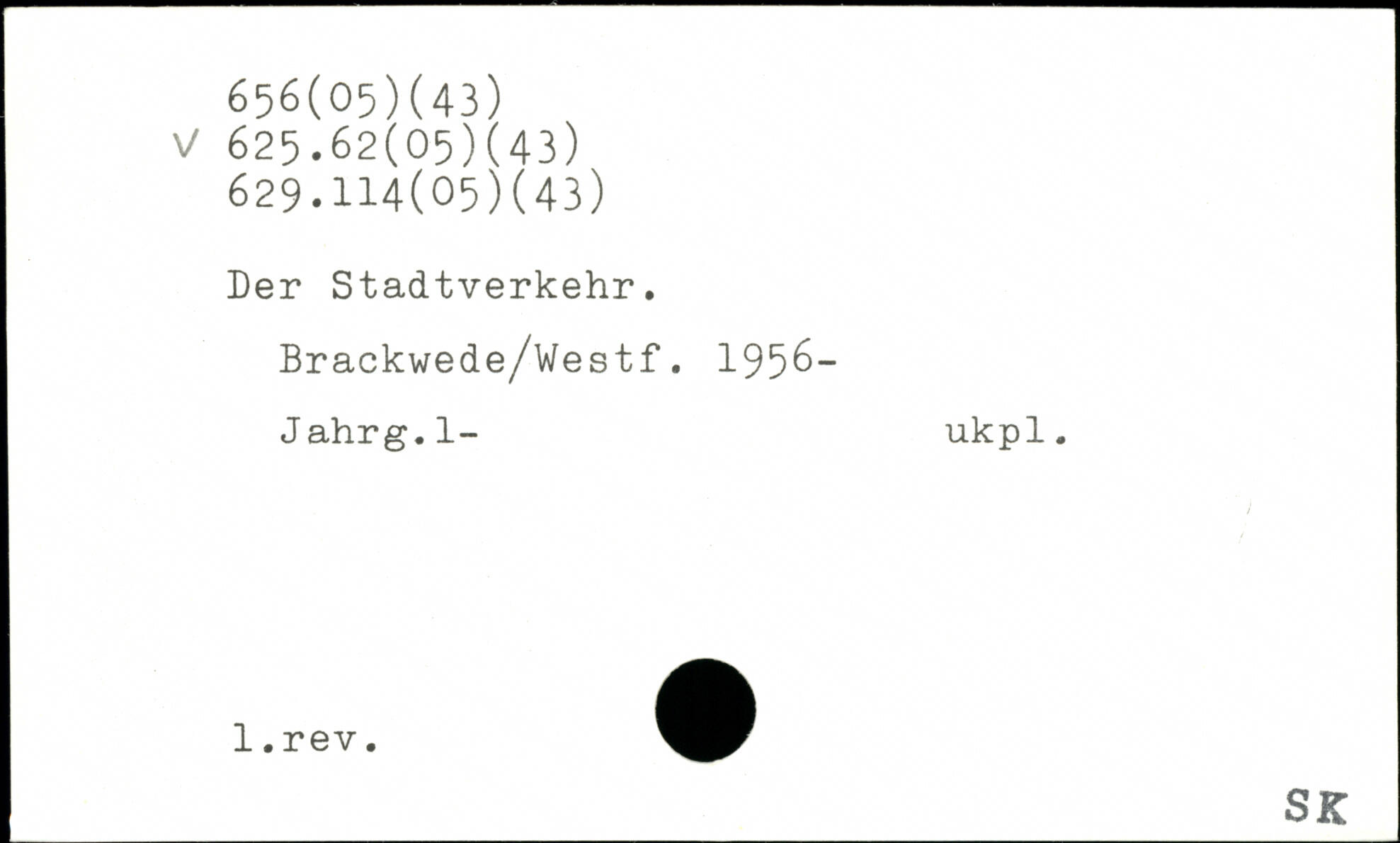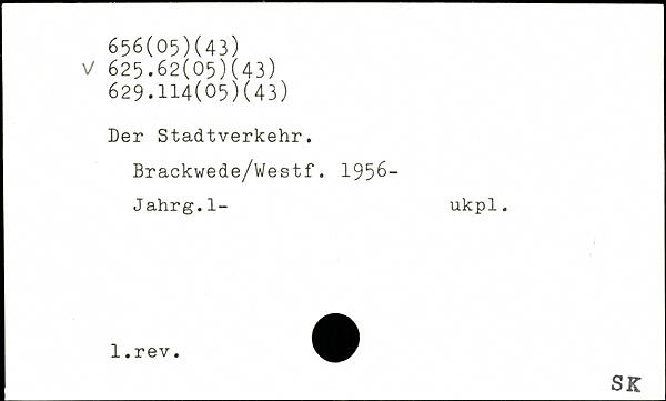 Der Stadtverkehr. Brackwede/Westf. 195 6— Jahrg.l- ukpl.