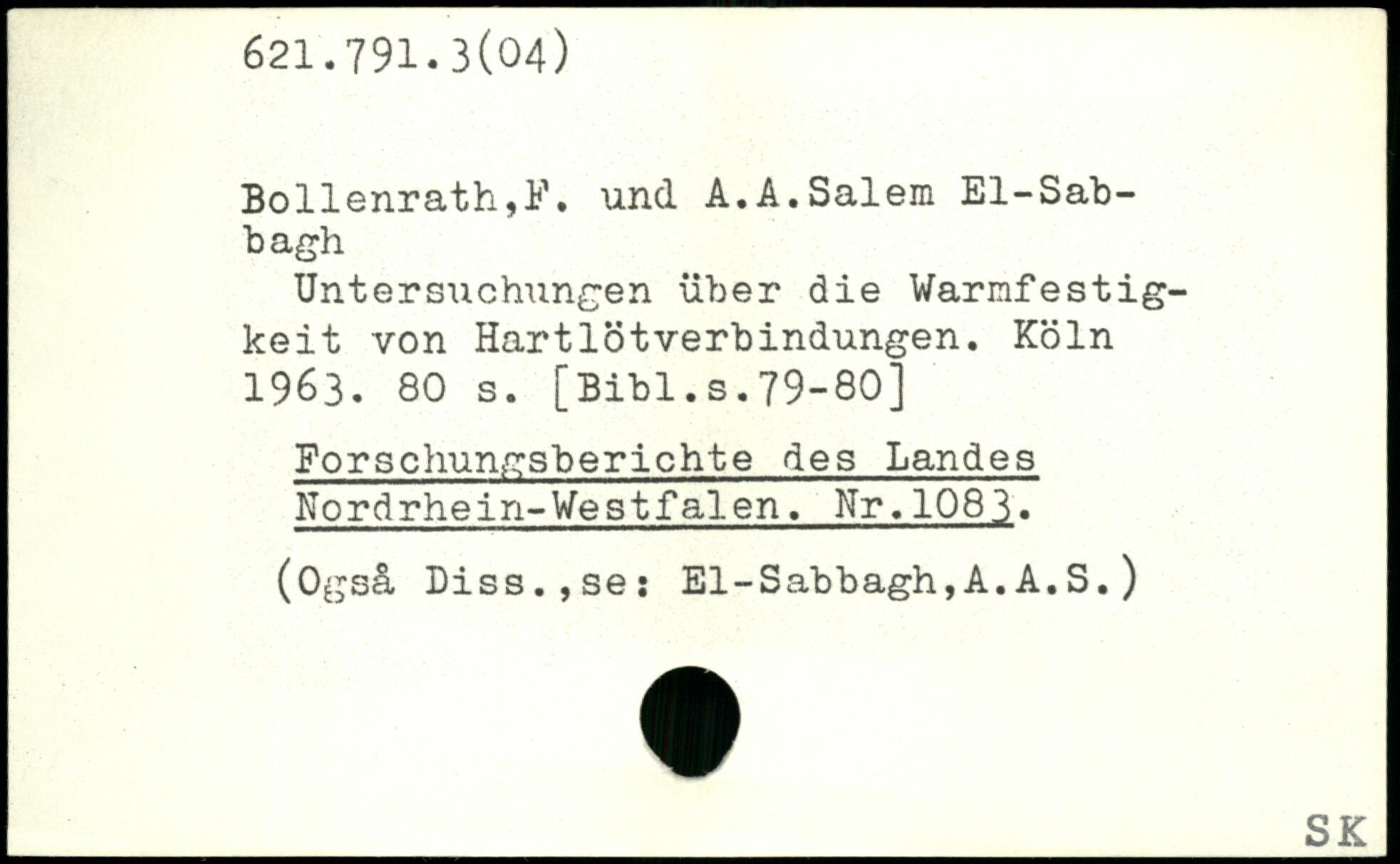 Bollenrath,F. und A.A.Salem El-Sab-bagh Untersuchungen über die Warmfestigkeit von Hartlötverbindungen.