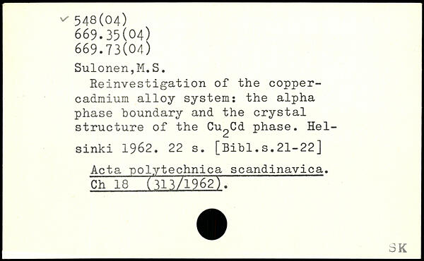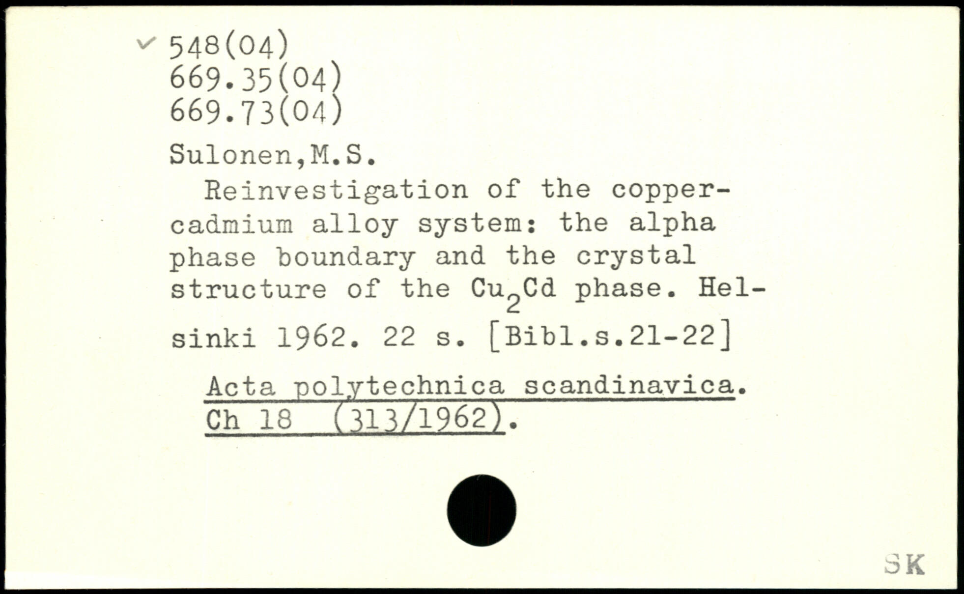 Beinvestigation of the copper-cadmium alloy system: the alpha phase boundary and the crystal structure of the Cu^Cd phase.