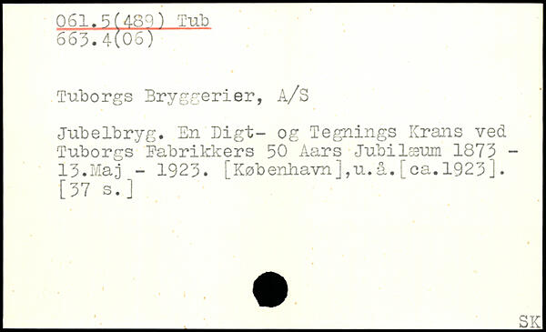 Tuborgs Bryggerier, A/S Jubelbryg. En Digt- og Tegnings Krans ved Tuborgs Fabrikkers 50 Aars Jubilæum 1875 -15.Maj - 1925. [København],u.å.ica.1925].