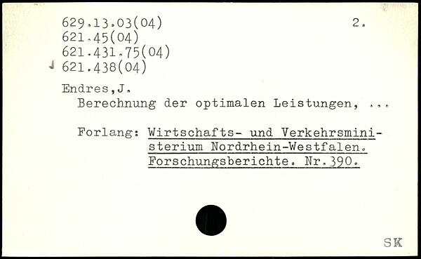 Berechnung der optimalen Leistungen, Forlang: Wirtschafts- und Verkehrsmini-sterium Nordrhein-Westfalen. Eorschungsherichte. Br.,390