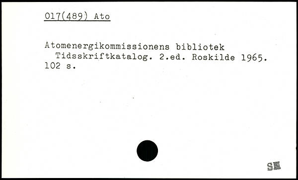 Atomenergikommissionens bibliotek Tidsskriftkatalog.