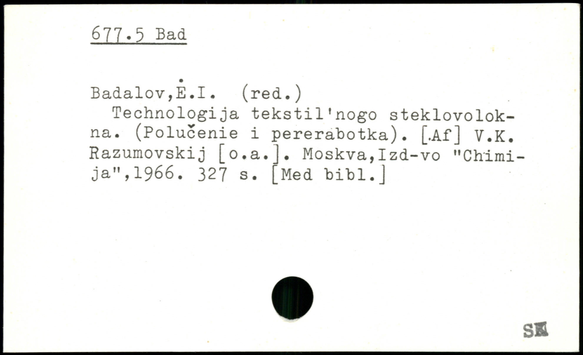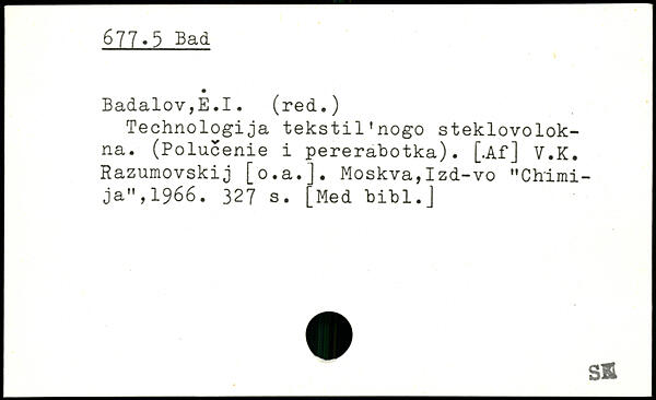Technologija tekstil'nogo steklovolok-na. (Polucenie i pererabotka). [.Af] V.K. Razumovskij [o.a.]. Moskva,Izd-vo "Chimi-ja",1966.