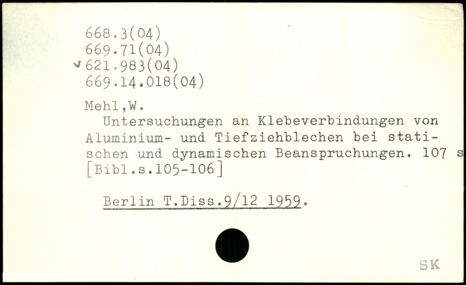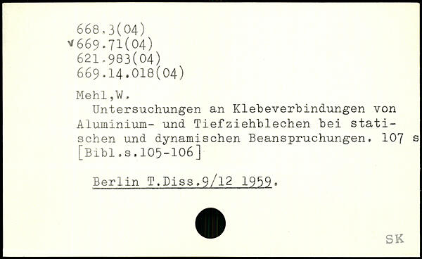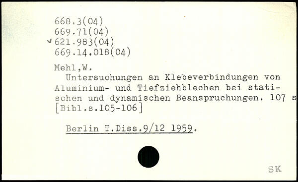 Untersuchungen an Klebeverbindungen von Aluminium- und Tiefziehblechen bei statischen und dynamischen Beanspruchungen