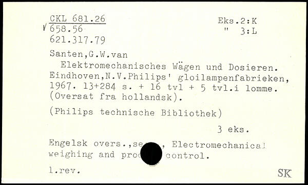 Elektromechanisches Wagen und Dosieren. Eindhoven,N.V.Philips' gloilampenfabrieken, 1967