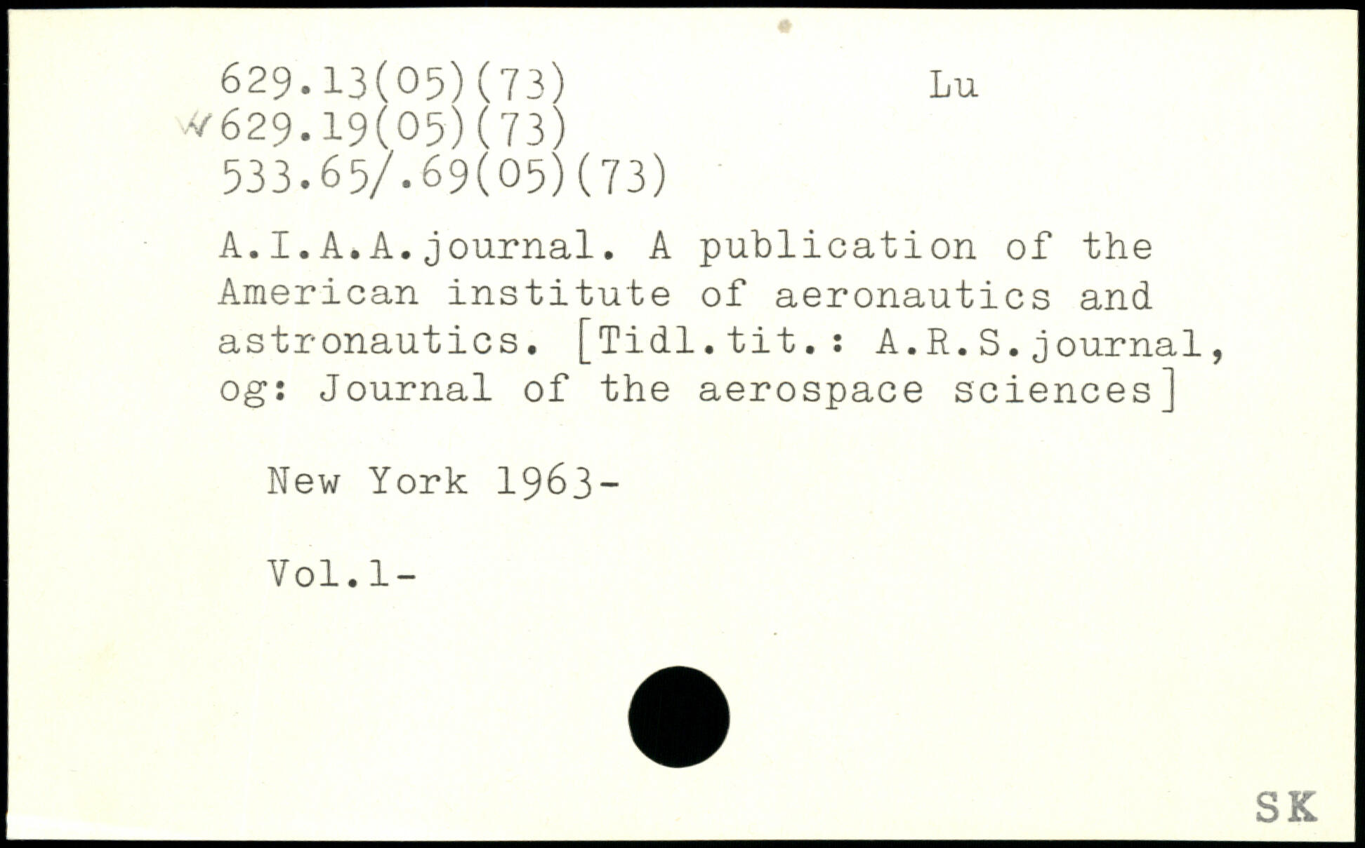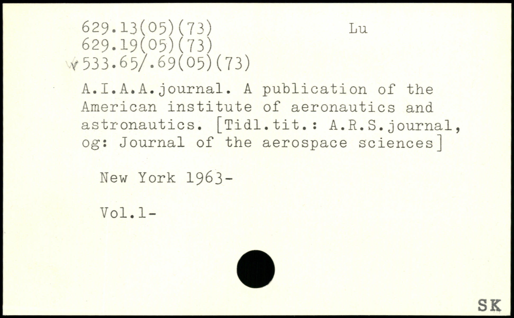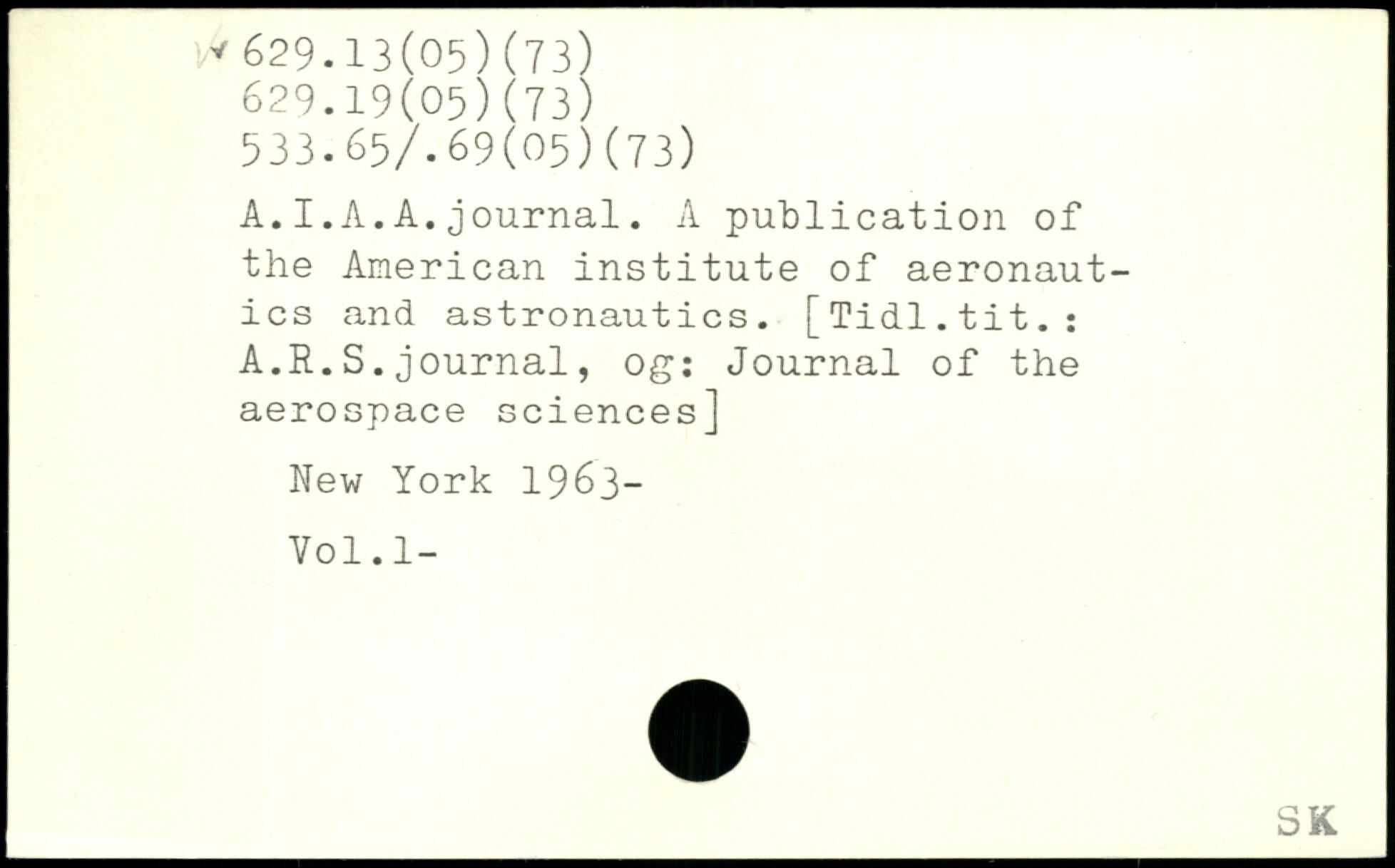 A.I.A.A.journal. A publication of the American institute of aeronautics and astronautics. [Tidl.tit.: A.R.S.journal, 0g: Journal of the aerospace sciences]
