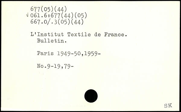 L'Institut Textile de France. Bulletin.