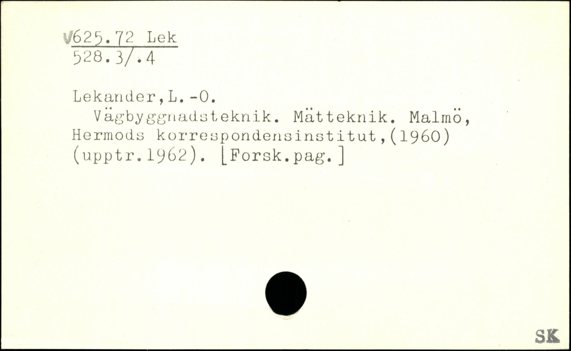 Vågbyggnadsteknik. Mätteknik. Malmö, Hermods korrespondensinstitut,(1960) (upptr.1962). [Porsk.pag.]